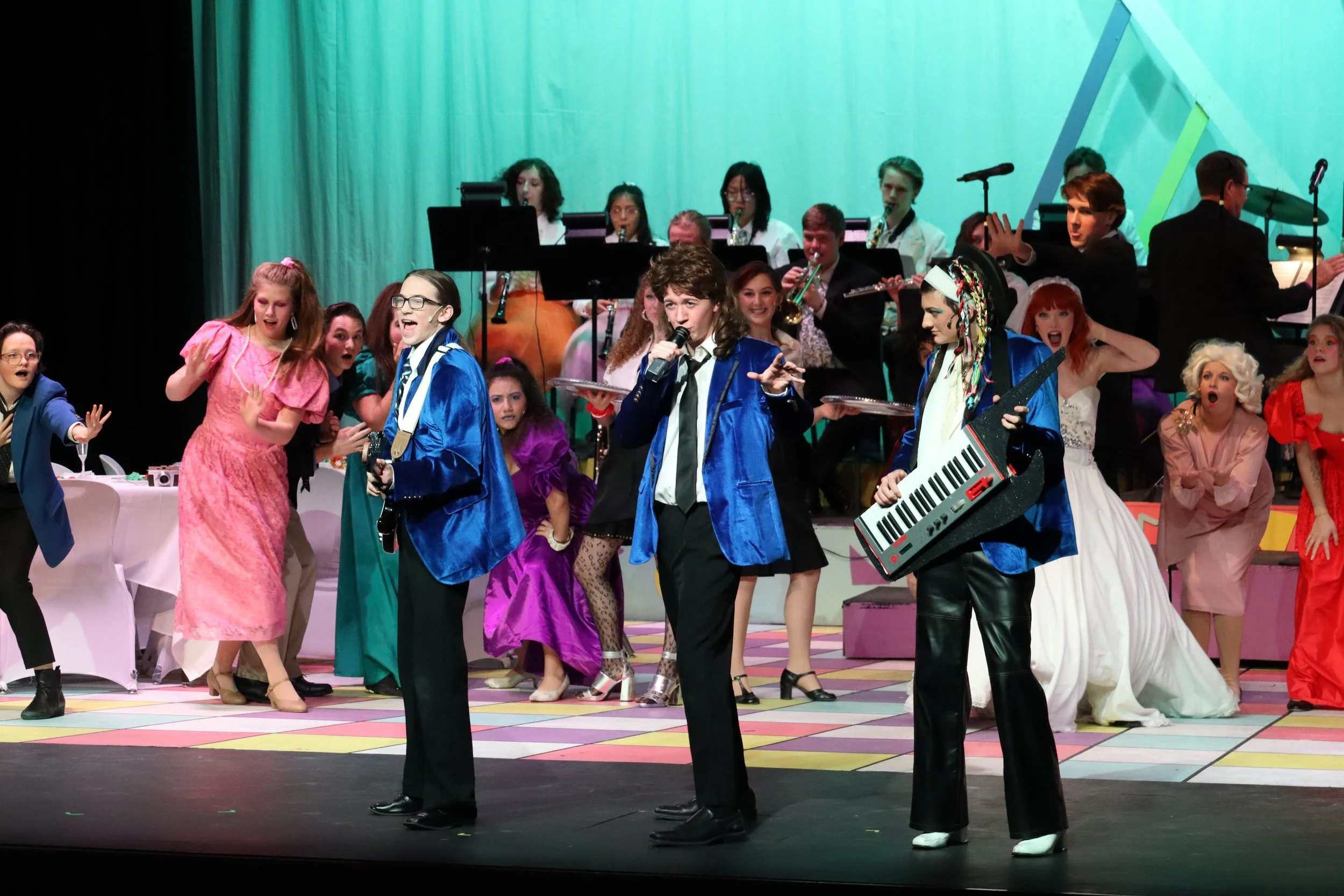 I was on construction and run crew for this show. It ran from March 9, 2023 to March 11, 2023. It had 3 evening performance and 1 matinee. The Wedding Singer had a cast of 30 and a total of 46 crew.